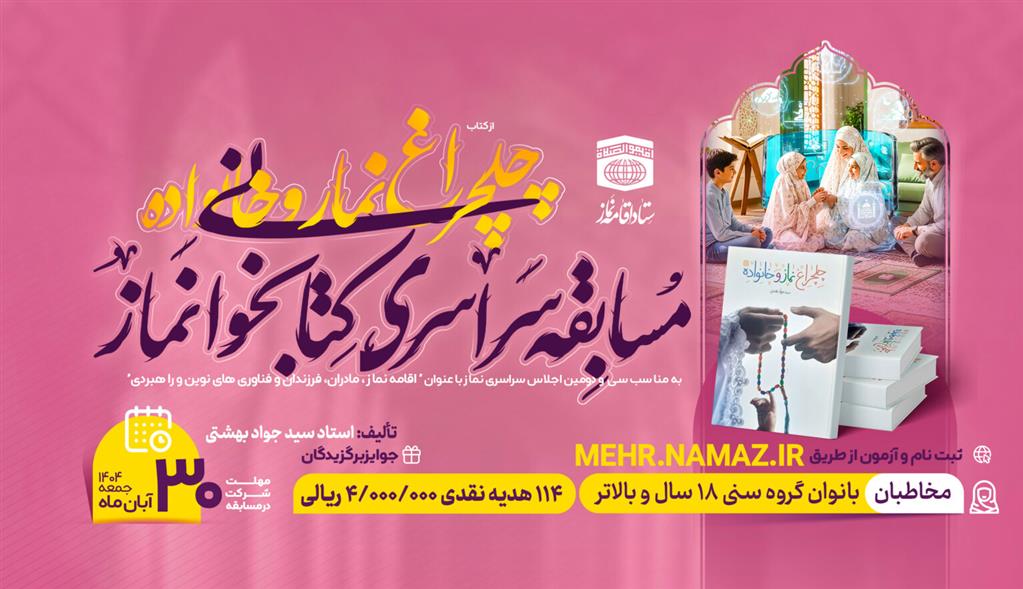 مسابقه سراسری کتابخوانی نماز ویژه بانوان 18 سال به بالا، علاقهمندان میتوانند با مراجعه به سامانه اینترنتی