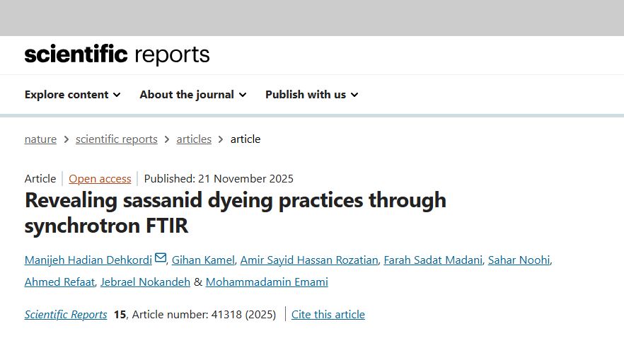 مقاله جناب آقای دکتر محمد امین امامی به همراه تیمی از همکاران ایرانی و بین المللی در مجله وزینScientific Reports از انتشارات Nature با عنوان Revealing Sassanid dyeing practices through synchrotron FT-IR به چاپ رسید.